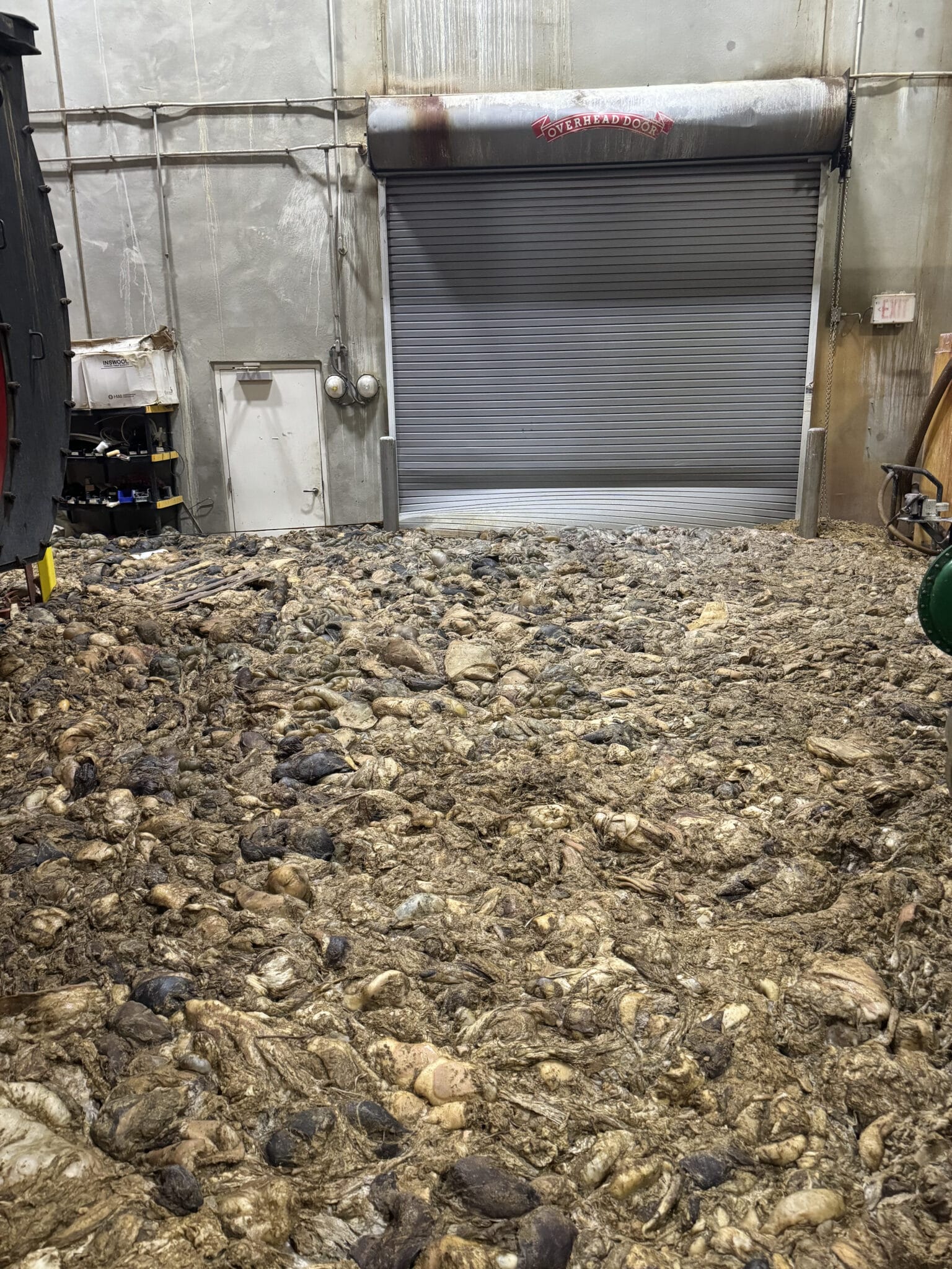 Multiple photos and videos obtained by Sentient show animal waste lining the floor of the facility, as well as pooled outside. The floor is lined with so many decomposed hogs that wooden walkways were placed over their bodies for employees to get across.
