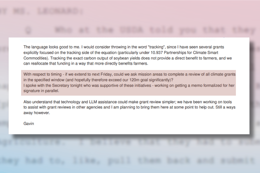 In the same email, he said he wanted to surpass DOGE’s goal of cutting $120 million in climate-focused grants by a certain date. “I spoke with the Secretary tonight who was supportive of these initiatives – working on getting a memo formalized for her signature in parallel,” he wrote.
