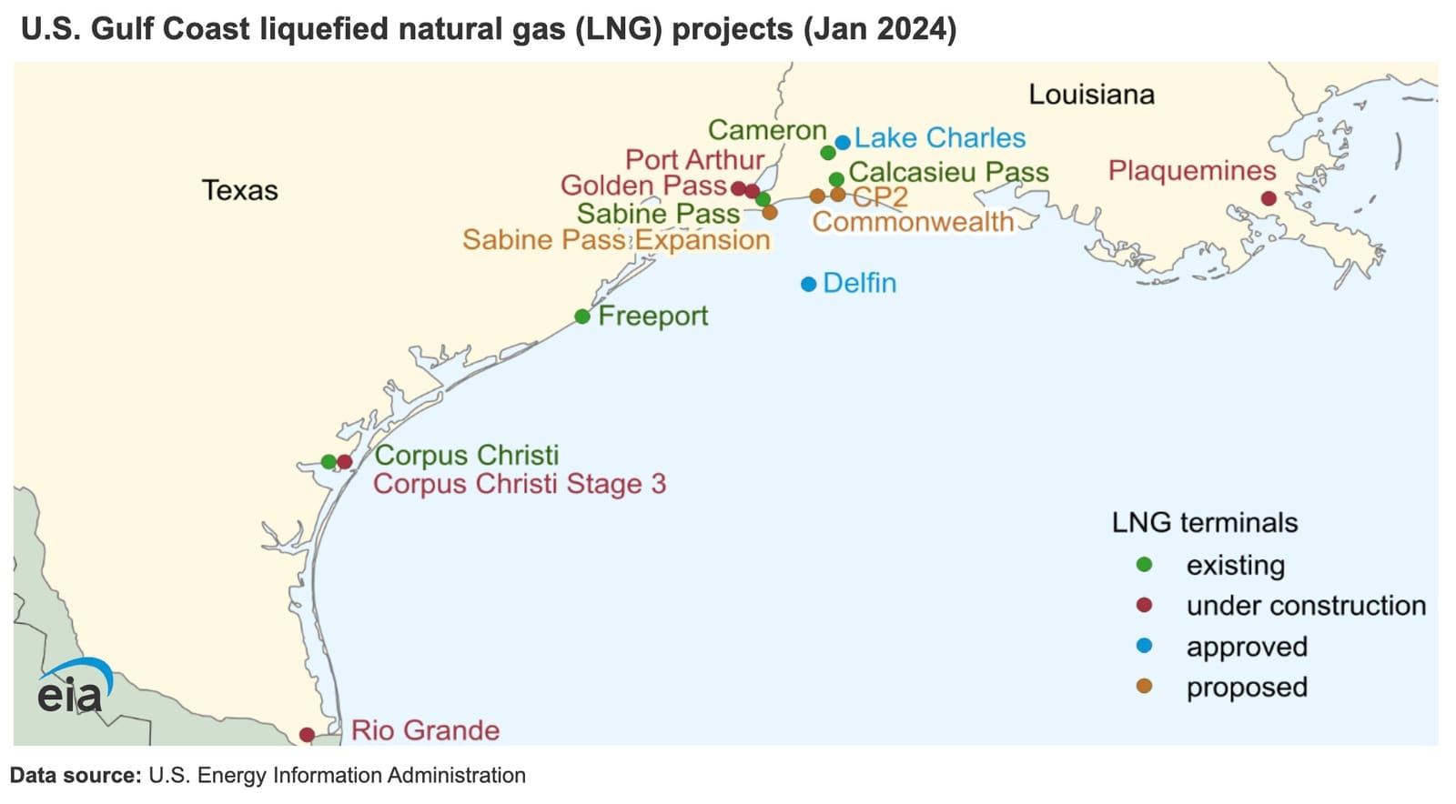 The U.S. Energy Information Administration recently calculated that if all of those approved facilities are built, North America’s liquefied natural gas exports would more than double, from 11.4 billion cubic feet per day in 2023 to 24.4 billion in 2028.