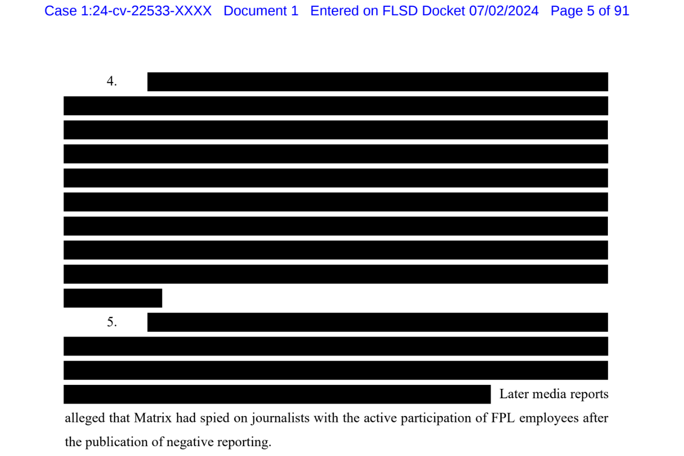 Because Kusmierski’s attorneys had to sign a non-disclosure agreement to gain access to the NextEra records, large parts of the lawsuit were redacted. His attorneys have asked for permission to file the redacted portions of the lawsuit under seal, meaning they may remain secret.