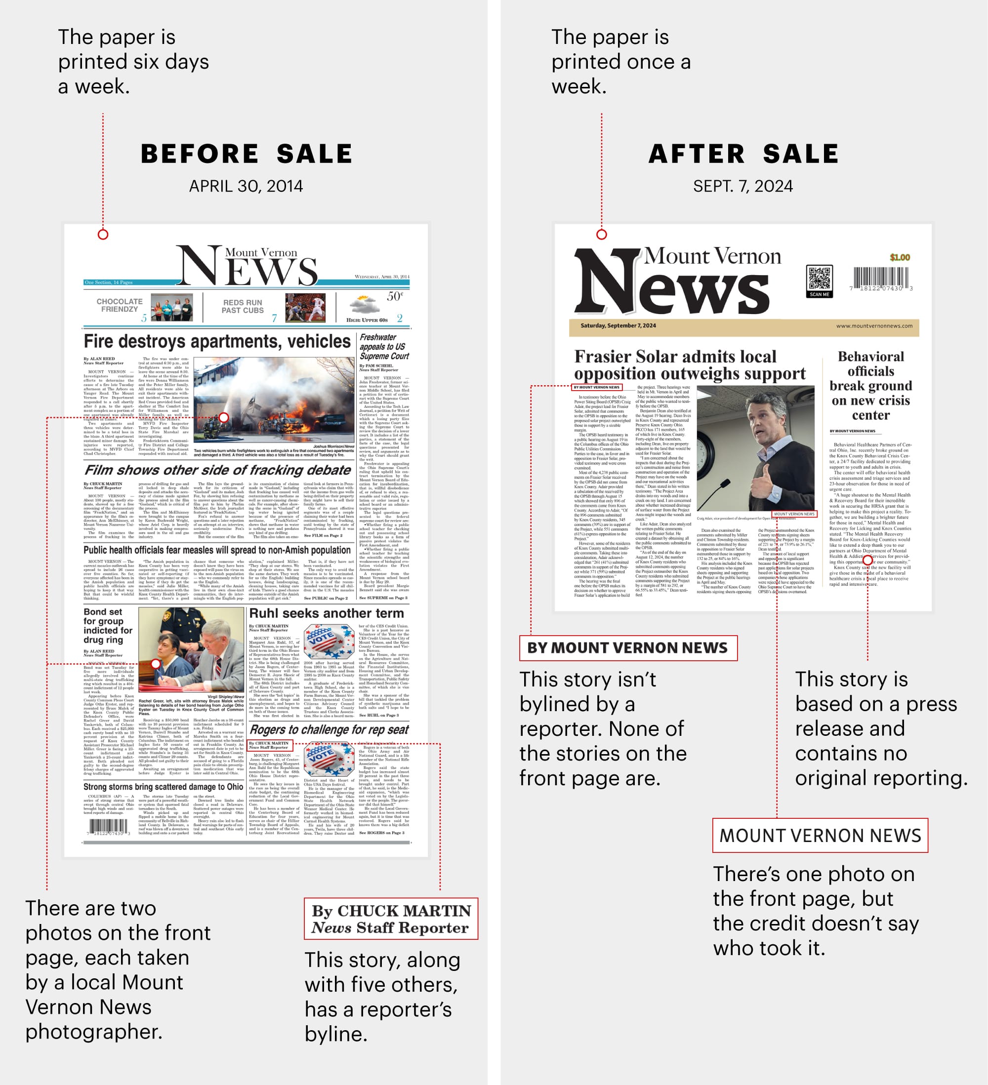 Today, the Mount Vernon News only publishes once a week and has no local reporters or photographers.