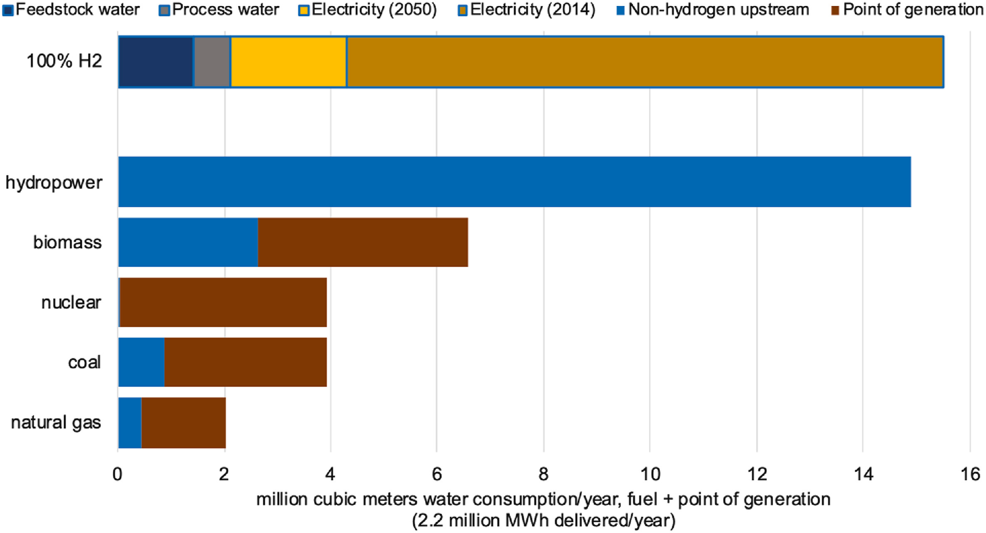 However, extracting fossil fuels as well as cooling coal- and gas-fired power plants guzzles tens of billions of gallons of freshwater each year. If U.S. hydrogen production reached a middle-of-the-road scenario for a “deeply decarbonized” future in 2050, it would consume 15% of the freshwater required by the entire U.S. energy system in 2014 while producing about 10% of total energy.