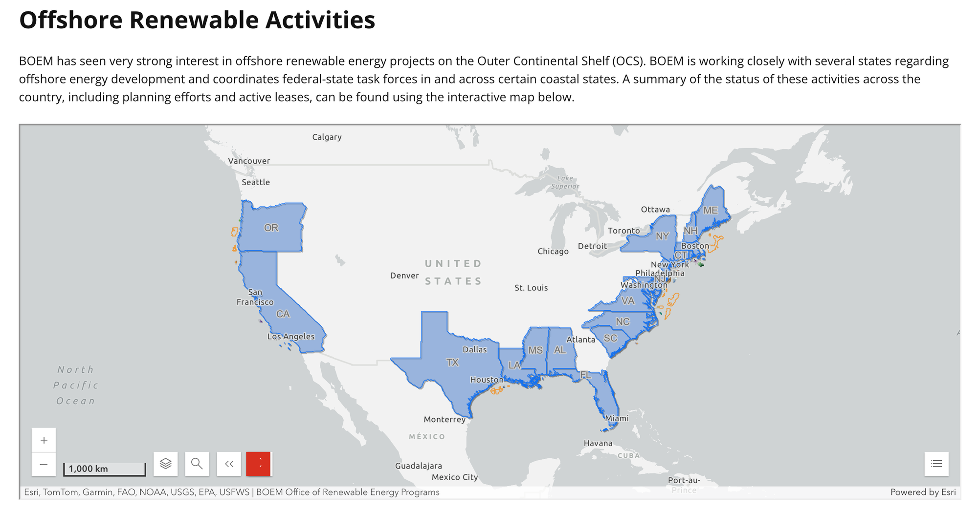 By contrast, worldwide there are almost 73,000 MW, or 73 gigawatts, of offshore wind operating, with half of that amount off China’s coast.