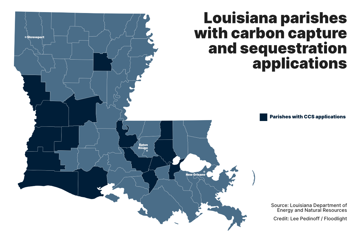 Louisiana is ground zero for CCS, with more than two dozen projects aiming to remove industrially produced carbon dioxide and storing it permanently underground to reduce greenhouse gas emissions.