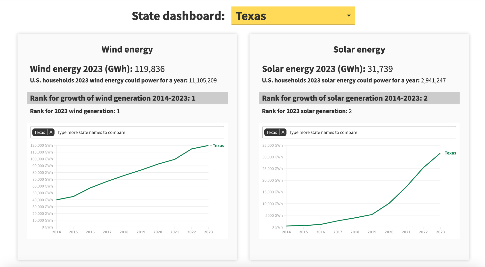 Broadly, the report’s results are not surprising: The Midwest as well as California and Arizona boast higher amounts of renewable energy because of clean energy friendly policies and the abundance of wind and solar. Yet, even the Southeast, which continues to lag in renewable energy growth, saw a 33-fold increase in solar across seven states. That’s enough solar to power 4.5 million households, Neumann said.
