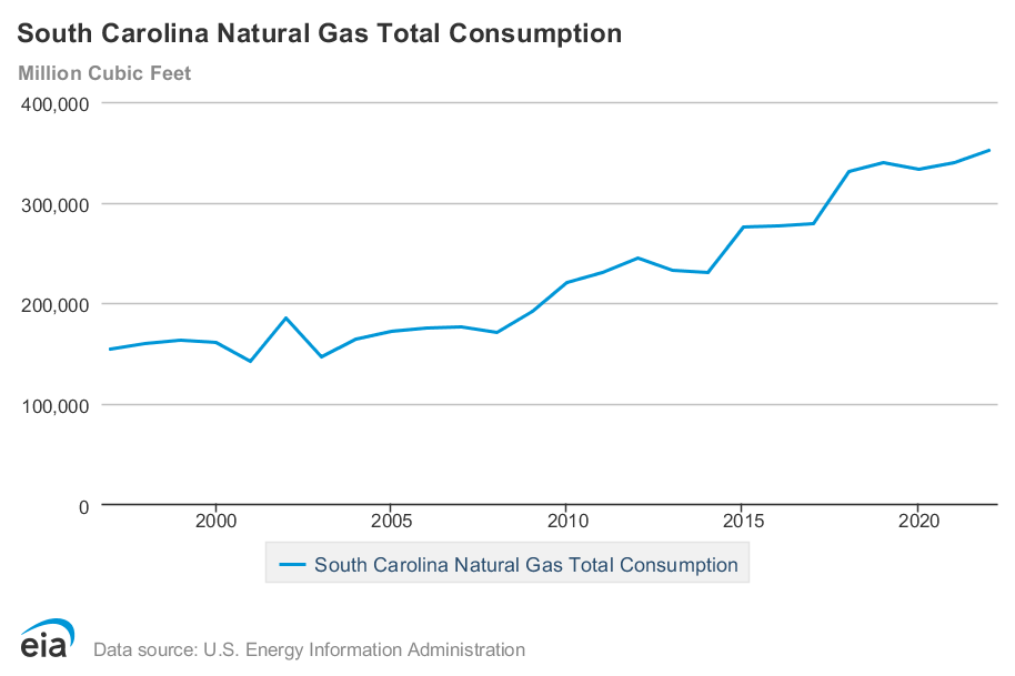And their main response has been to ask regulators for permission to build lots and lots of new gas plants. Demand for methane in South Carolina rose by more than 43% between 2012 and 2022.
