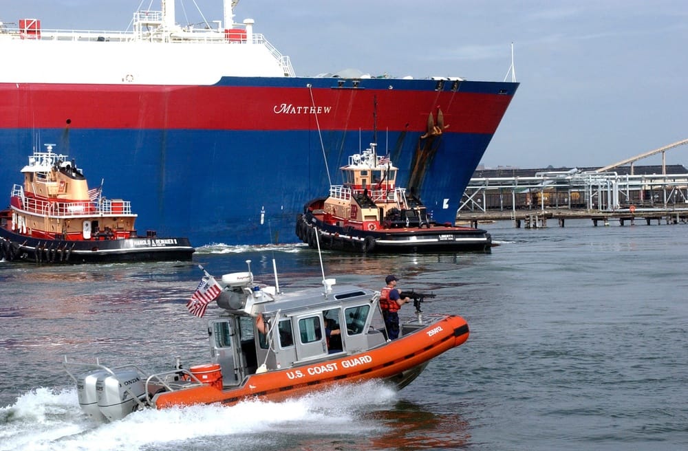 When LNG import facilities were being proposed in the early 2000s, there was a public outcry over the potential that terrorists could target the ships as they traveled through populated areas. The Coast Guard and state and local police responded by escorting the tankers in and out of Boston Harbor with machine guns.